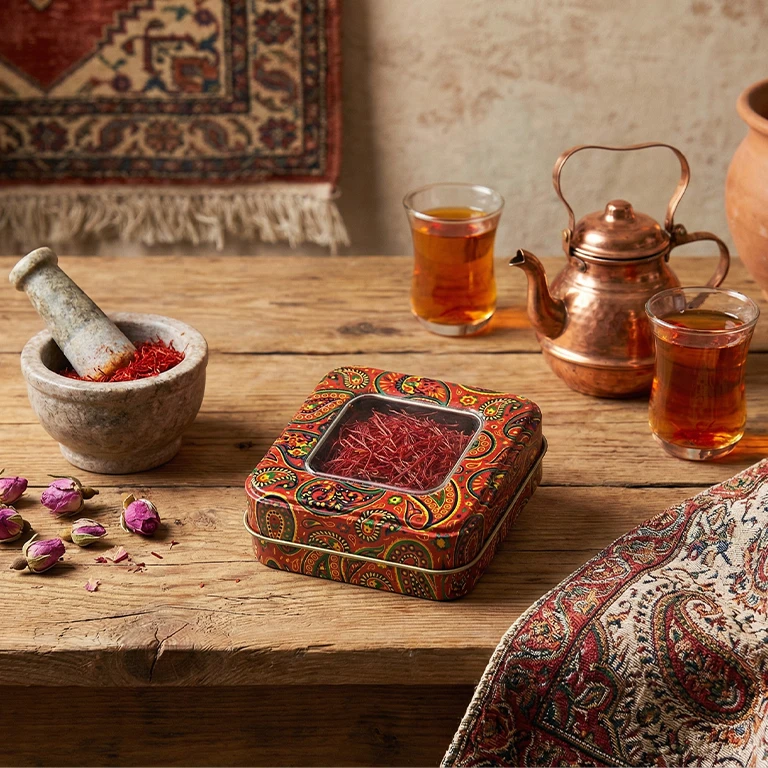 ظرف فلزی زعفران مدل مربعی طرح دار- ترمه نیم مثقال
